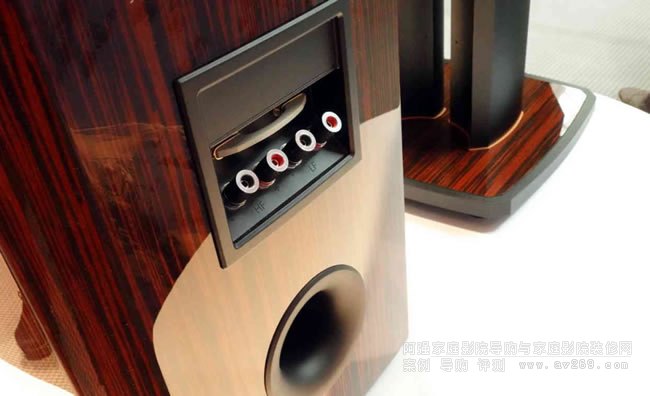 Summit系列三款喇叭都是低音反射管位于背面的低音反射式音箱架構,而且都具備兩組可Bi-Wire/Bi-Amp連接的喇叭端子,但使用的并非一般的跳線或金屬板,而是位于端子群上方的一根弧線造型的ㄇ字橫桿,不僅拿取安裝很便利,也有更高級的質感。