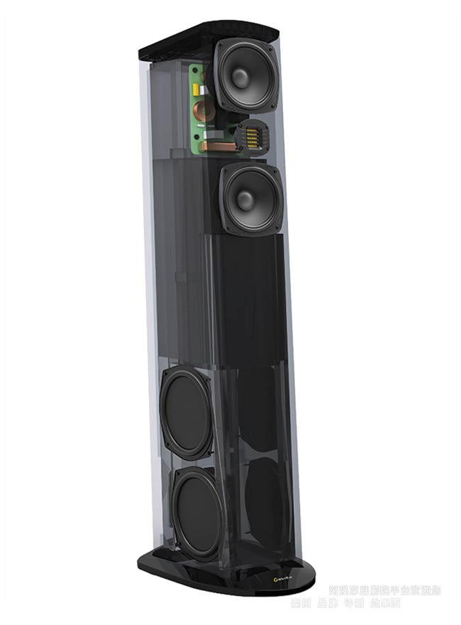 The Five 獨(dú)特的箱體形狀既具有聲學(xué)目的性,又具有驚人的吸引力。其狹窄的前擋板和時(shí)尚的后傾角,與復(fù)雜的分頻器相結(jié)合,既能精確對(duì)齊驅(qū)動(dòng)器陣列,在聆聽位置也能實(shí)現(xiàn)指向耳朵水平的連貫波浪發(fā)射,并產(chǎn)生非平行的前后擋板,以更好地控制內(nèi)部駐波。而且,非平行的側(cè)柜壁和傾斜的頂部提供了相同的聲學(xué)性能優(yōu)勢(shì)。