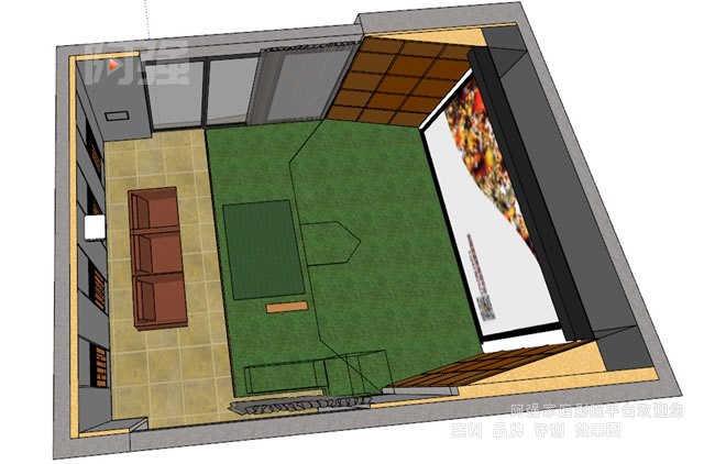 •功能區劃分采用“三區一線”布局:擊球區:鋪設專業高爾夫地墊(3m×2m),周邊保留1米安全緩沖帶投影區:投影儀安裝于天花板。觀賽區:沙發與屏幕呈120°夾角,距離為屏幕高度的1.5倍以上
