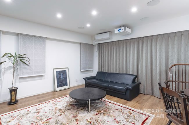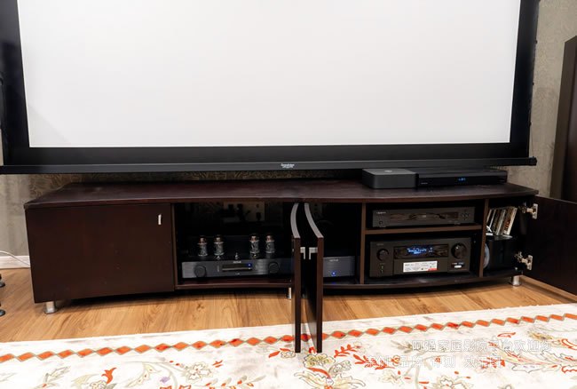 半開放式客廳影音空間音頻使用立體聲音樂和多聲道家庭影院功能,來滿足多種聽音需求,而視頻則使用了JVC 4K投影機投120英寸畫面和55英寸的平板電視來使用,立體聲系統與德國歷史悠久的電子管放大器品牌OCTAV的前級主放大器“V110”,以及配備Dennon AV放大器的5.1系統結合。V110具有直通功能,因此觀看家庭影院時無需更換線纜即可將V110作為功率放大器使用。