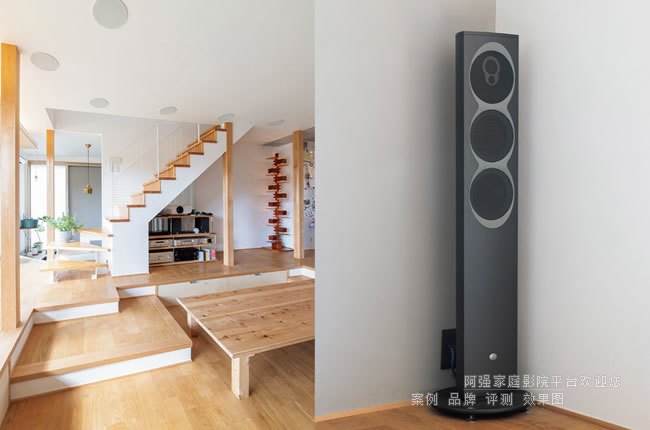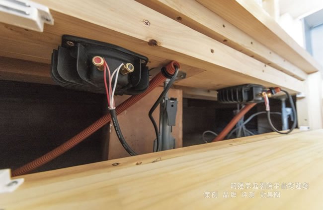 值的留意的細節是本案的功放等設備柜沒有放在前面,而是放在后部去往閣樓的樓梯下面,同時還可以放置一套小型的立體聲設備。