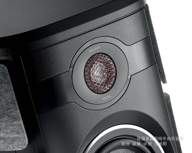 側板被設計成既可浮動又可拆卸,為揚聲器增添了靈活多變的元素。這些面板采用了毛氈中一種因耐用且美觀而得名的 OEKO-TEX® 認證材料。面板線條精致,在前端包含有標志性的凹槽,用以優雅地固定帶背光的FOCAL標志。位于面板后方的低音揚聲器則巧妙地集成于兩側,進一步增強了整體聲音的擴散效果。