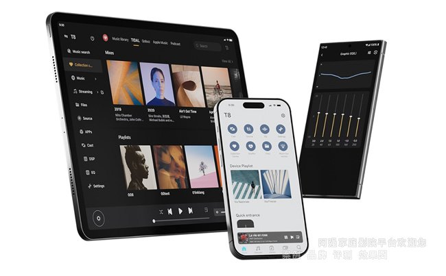 Eversolo 支持 Tidal、Qobuz、Highresaudio 和 Amazon Music 流媒體服務,同時兼容 Tidal Connect 和 Qobuz Connect。對于音樂服務器,T8支持Roon支持和DLNA。新音樂服務的支持持續開發中,這個列表并非全部。