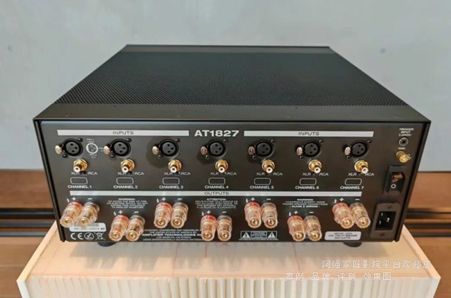 在聲音表現上,AT1827 以扎實的中低頻控制力、清晰而不緊繃的中頻密度,以及自然延展的高頻表現見長。其大電源儲備與 Class-AB 放大結構,使聲音在大動態場景中不易壓縮,瞬態反應迅速而不生硬,尤其在電影復雜聲軌或全景聲系統中,能夠保持聲像穩定、定位準確,而不會因負載變化導致音色漂移。這種“穩定而有力量”的聲音特質,是許多影院系統長期使用后依然保持表現一致的關鍵。