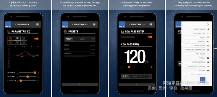 該行業領先的SVS低音炮控制智能手機應用兼容Apple iOS、Google Android和Amazon Fire平臺,方便直觀地管理所有低音炮控制。