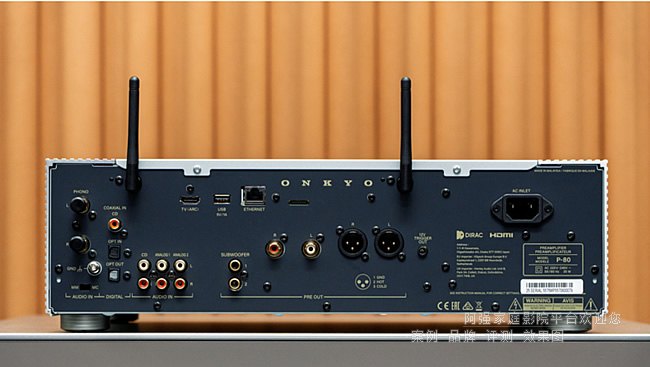 P-80的內部擁有豐富的接口,其中,模擬輸出部分均提供平衡和非平衡輸出,而且還額外增加兩路低音輸出,可以連接兩個低音音箱功能