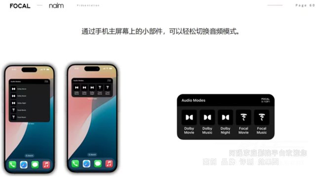 通過FOCAL & NAIM手機App,用戶可一鍵切換音效模式,并支持語音控制,操作高效便捷。蘋果用戶還可利用主屏幕小組件快速調節,體驗更加智能。