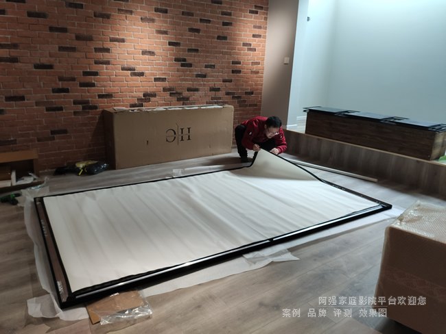 影音室寬度有限,我們在他的左側(cè)開放空間組裝畫框透聲幕